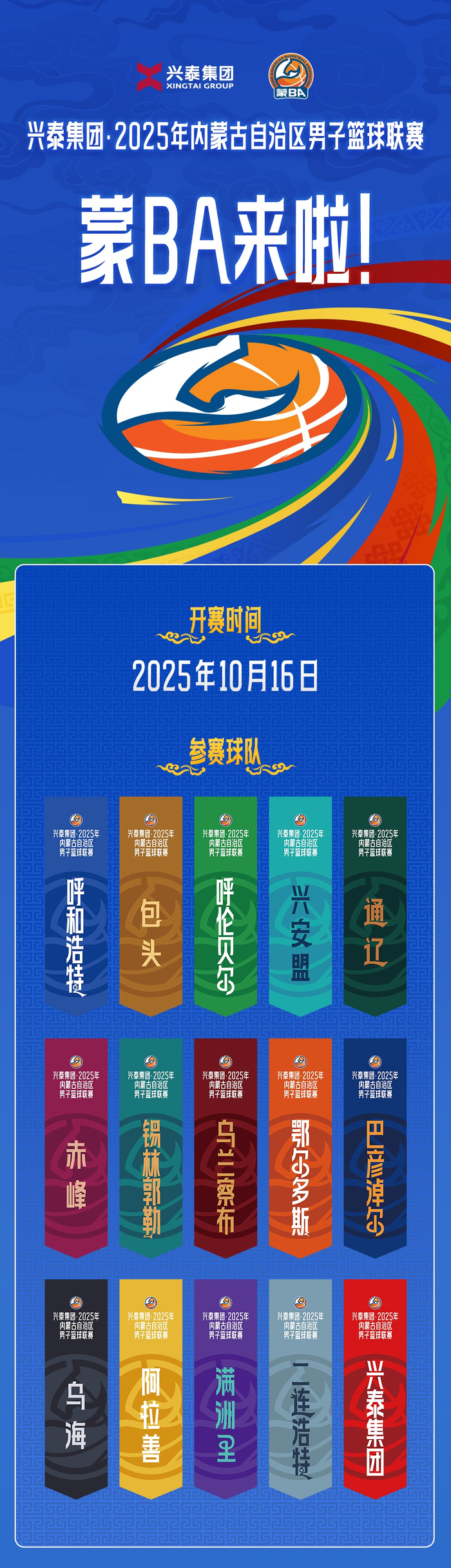 10月16日起,锁定直播吧,全程观看2025蒙BA直播,为内蒙古健儿加油助威,一同感受内蒙古篮球的热血与风情!