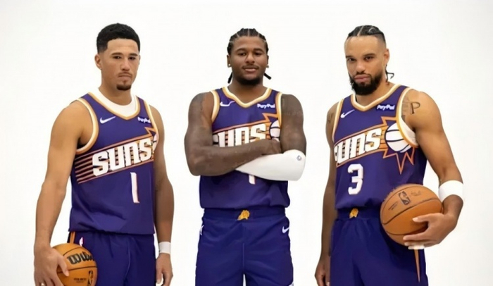 上上季太阳有布克、格雷森·阿伦、比尔和埃里克·戈登四个2号位,中锋是努基奇和206公分的尤班克斯。