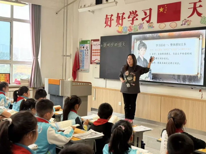 陈雪松老师执教《圆明园的毁灭》一课,情境创设有效,情感共鸣强烈,教学中通过圆明园遗址视频、火烧圆明园纪录片等多媒体资源,成功营造出历史的厚重感与沧桑感。环节设计层次清晰,重点突出,从导入到字词学习,再到整体感知、深入探究,最后总结升华,环节推进逻辑清晰。