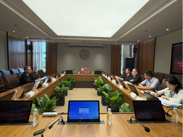 邓如朋介绍了秘鲁天主教大学的基本情况和发展规划。他表示,秘鲁天主教大学高度重视与亚洲尤其是中国高校的合作,非常期待与上海交通大学建立长期合作关系,共同推动中秘教育的深入交流。