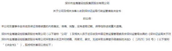 深圳证监局决定对公司采取责令改正的监管措施,并对相关责任人出具警示函,要求在收到决定书后30日内提交书面整改报告。*ST宝鹰表示,公司将加强内部控制制度,提升财务管理的专业性和规范性,确保信息披露的准确性和合规性。