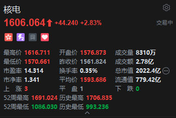 10月27日消息,港股核电股普遍上涨,其中,中广核新能源涨超4%,中广核电力涨3.27%,中核国际涨1.58%。