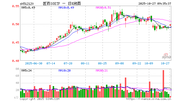 医药50ETF(512120)业绩比较基准为中证细分医药产业主题指数收益率,管理人为华安基金管理有限公司,基金经理为苏卿云,成立(2013-12-04)以来回报为47.09%,近一个月回报为-4.39%。