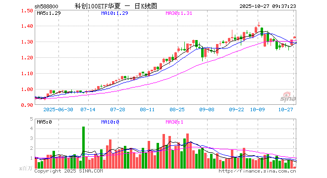 10月27日,科创100ETF华夏(588800)开盘涨0.84%,报1.321元。科创100ETF华夏(588800)重仓股方面,百济神州开盘涨1.43%,睿创微纳涨0.87%,华虹公司涨2.49%,泽璟制药涨1.67%,翱捷科技跌0.72%,中科飞测跌0.56%,安集科技涨2.38%,纳芯微涨0.98%,芯源微涨2.98%,国盾量子涨2.54%。