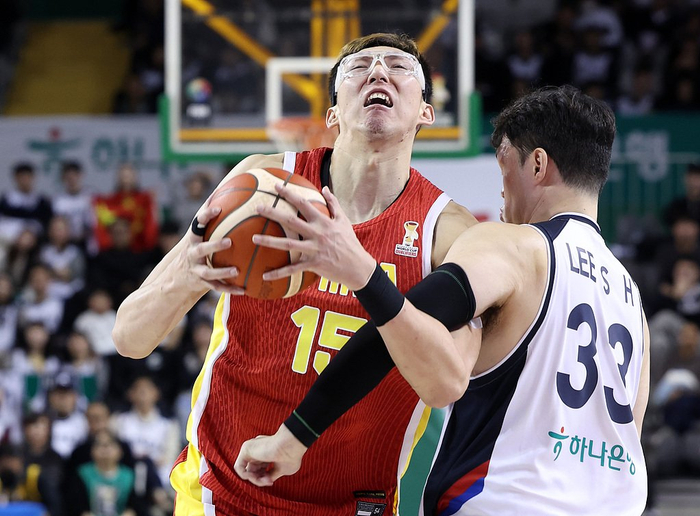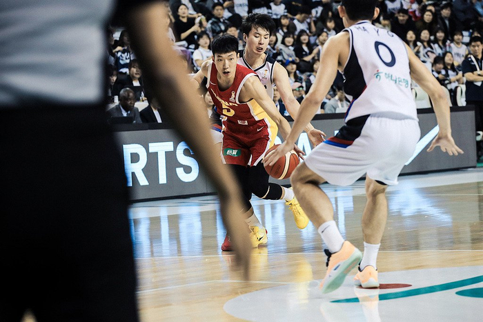 毕竟,你都很难在联赛中看到曾凡博和张镇麟两个瘦高锋线低位背打或是罚球线策应,更别说让他们在FIBA赛场承担这样的角色。反倒是二番战中的李贤重,开始低位强吃和压缩中国男篮的阵型。