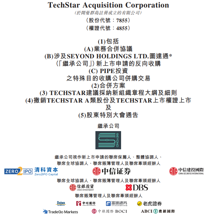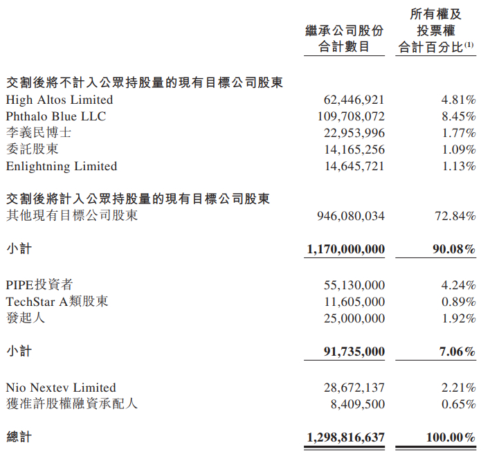 此前于2025124日,TechStar董事会宣布,TechStar及目标公司与蔚来(09866.HK)旗下Nio Nextev Limited订立格式与PIPE投资协议基本一致的认购协议,据此,Nio Nextev Limited已有条件同意认购,且目标公司(以其作为继承公司的身份)已有条件同意配发及发行合共约2867.21万股继承公司股份,总认购价格约2.87亿港元,与交割同时进行。