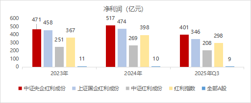 数据显示,2023年至2025年三季度,央企红利指数成份股的平均净资产收益率(ROE)与净利润水平,持续高于A股整体与部分主流红利类指数,盈利状况的持续改善,有望为可持续的经营与股东回报带来“源头活水”。