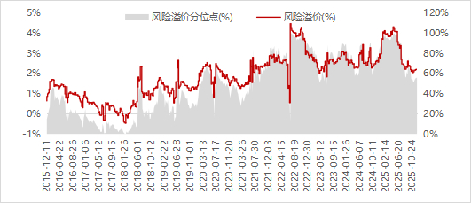 数据来源:Wind,数据区间为15/12/9-25/12/9,风险溢价计算指标为:央企红利指数股息率-10年期国债收益率。投资国债和投资股票的风险收益特征不同,投资者进行投资时应当全面考虑投资风险。