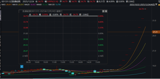 胜通能源(001331)今日再度涨停,续创历史新高。截至收盘,该股报34.79元/股,涨停板上封单近13万手。至此,该股已连续9个交易日涨停。