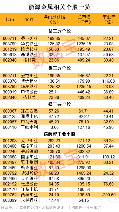 以碳酸锂、钴、镍、锰为代表的能源金属价格也持续走高。其中,碳酸锂期货12月29日早盘一度站上13万元/吨的大关,收盘失守12万元/吨,但相比年内不到6万元/吨的低点,价格已经翻倍。