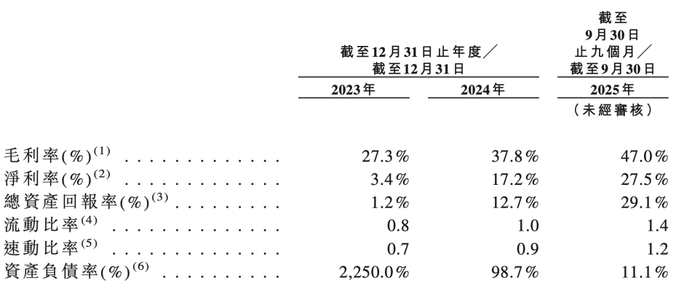 根据招股书,2023年、2024年、2025年前9个月,其收入分别为3.56亿、7.3亿、11亿。净利润同步暴涨,分别为1220万、1.25亿、3.05亿,2024年利润暴涨924%。
