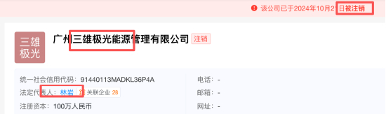 董事长人选未能形成一致意见后,分歧进一步传导至经营管理层。7月中旬,在总经理聘任议案中,张贤庆、陈松辉对林岩担任总经理投出反对票,理由集中在此前公司在未充分告知相关董事的情况下,投资设立持股53%的三雄能源,并授权其使用“三雄极光”商标作为企业字号,认为相关事项在内部控制和决策程序上需要进一步关注。该公司随后完成注销。