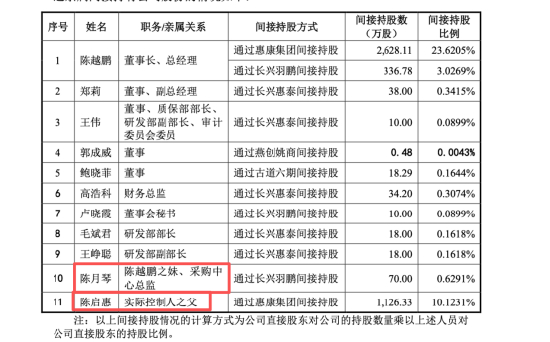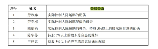 回溯招股书,惠康科技的关联关系本身并不简单。公司实际控制人为陈越鹏,通过多层持股合计控制26%的股份。报告期内,与发行人发生交易或资金往来的关联方,覆盖了其配偶、父母、配偶的母亲以及多位亲属。而按照实质重于形式原则认定的其他关联方,还包括实控人表兄妹、堂兄妹配偶、丈母娘外甥等亲属控制的多家个体工商户和企业。
