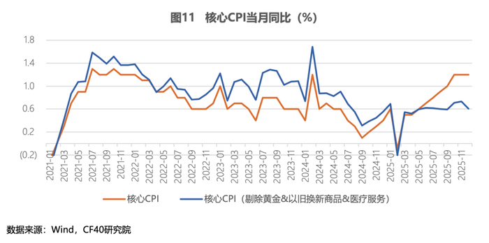 价格方面,CPI与PPI同比增速依然偏低,但趋势有所改善。核心CPI同比自2024年9月以来持续上行,CPI同比增速在2025下半年开始回升,这主要与消费政策的实施有关。剔除黄金价格上涨、以旧换新政策、医保支付改革等因素影响后,CPI与核心CPI同比基本企稳。在“反内卷”政策的推动下,PPI同比增速也在2025年下半年以来有所改善。整体而言,中国依然面临低通胀压力,价格水平的进一步修复依赖于积极有为的宏观政策。