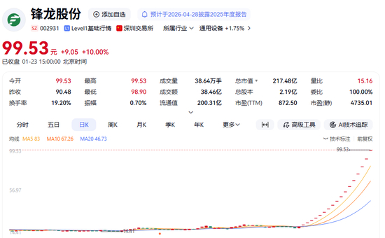 值得一提的是,深交所1月23日发布监管动态称,近期“锋龙股份”股价出现严重异常波动,公司停牌核查并多次发布风险提示公告,复牌后股价连续涨停,部分投资者在交易该股过程中存在影响股票交易正常秩序的异常交易行为,深交所依规对相关投资者采取了暂停交易等自律监管措施。