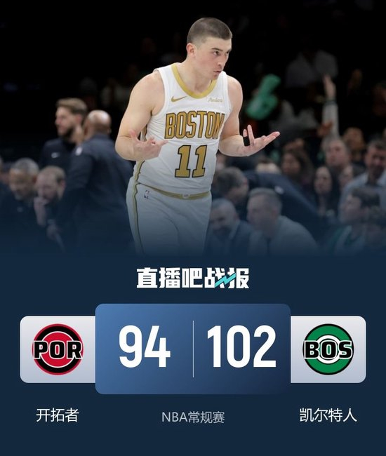 比赛上来,凯尔特人就率先进入状态打出8-0的完美开局,分差也是很快来到两位数,整个第一节开拓者只拿到11分,在普理查德命中加长的压哨三分后分差突破了二十分,次节凯尔特人的命中率出现下滑,开拓者抓住机会终于迫近比分,不过普理查德再中压哨跳投后凯尔特人还是领先15分结束半场;下半场回来,凯尔特人再次将分差拉开到二十分,但之后进攻再次陷入麻烦,两队一直围绕着十分左右的分差展开拉锯,末节凯尔特人也没有给开拓者继续迫近比分的机会,最终凯尔特人轻取开拓者拒绝连败。