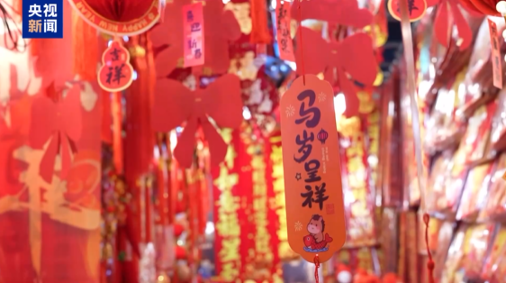 在重庆市渝中区,各个小商品市场陆续开启“年味模式”,红灯笼高挂、中国结摇曳,各类融入马年元素的创意小商品,吸引了市民前来采购。