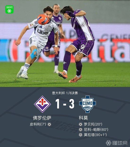 意大利杯:科莫3-1逆转佛罗伦萨晋级八强,尼科-帕斯、莫拉塔破门