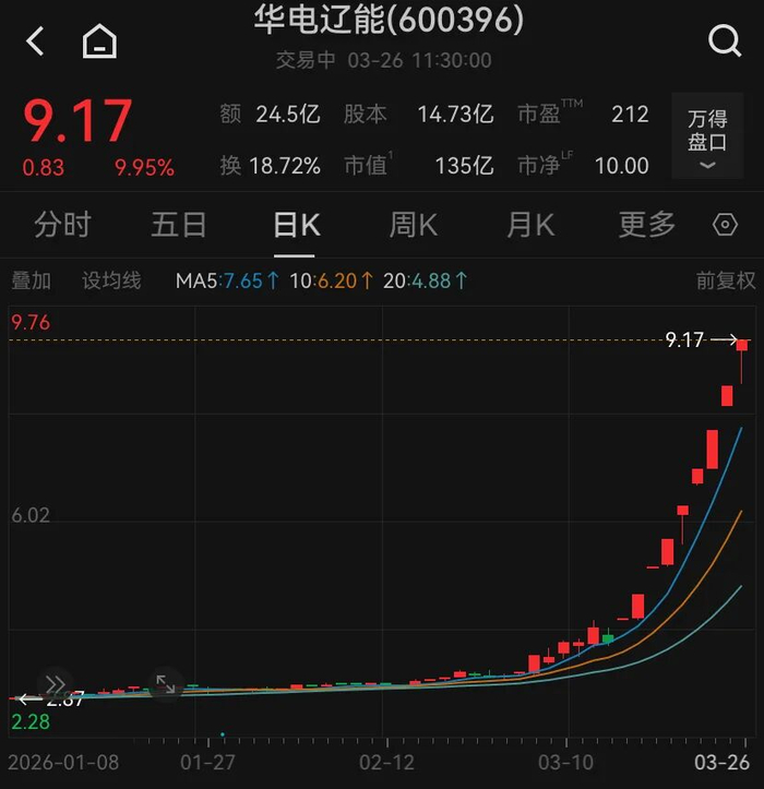 电力板块探底回升,前期热门股华电辽能走出9连板。