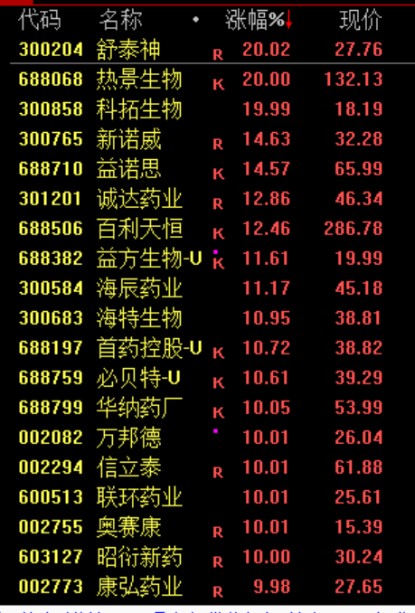医药股大幅走强,十余股涨停。