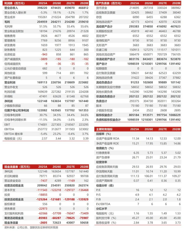 2026年3月26日,公司发布2025年年度报告。2025年,公司实现营业收入3982.2亿元,同比下降5.3%;实现归母净利润1220.8亿元,同比下降11.5%;实现扣非归母净利润1203.8亿元,同比下降9.8%。