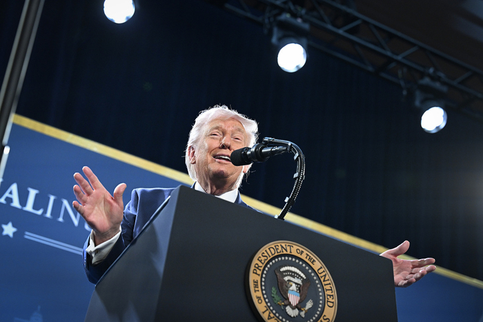 当地时间2026年3月9日,美国佛罗里达州多拉,美国总统特朗普在共和党成员议题会议上发表讲话。此时伊朗战争仍在继续,全国汽油价格上涨。视觉中国 图