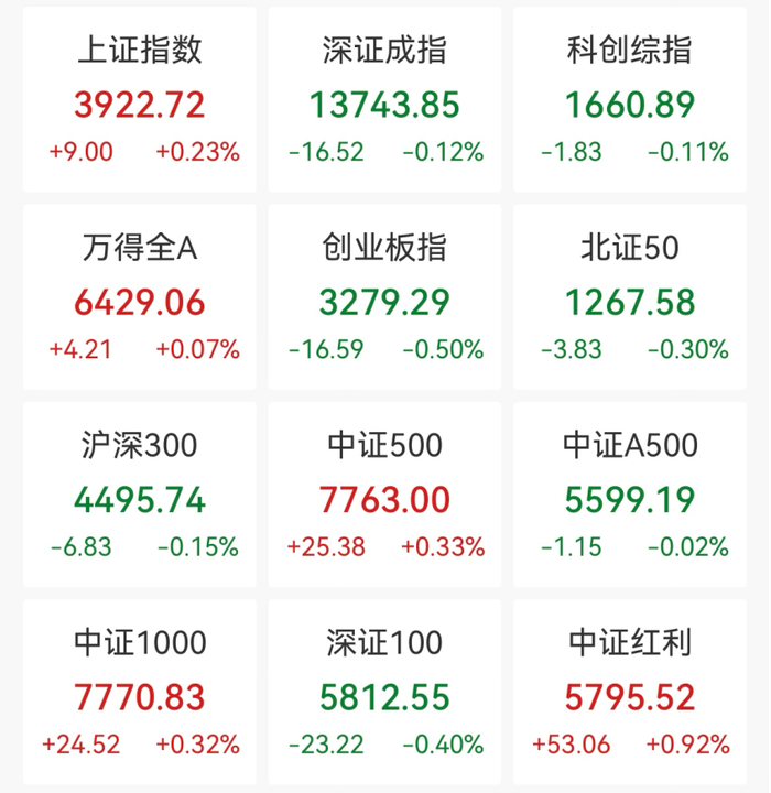 截至午间收盘,沪指涨0.23%,深证成指跌0.12%,创业板指跌0.5%,科创综指跌0.11%。