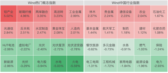 盘面上,创新药概念板块再度走强,农林牧渔、贵金属等板块领涨,铝板块个股掀“涨停潮”;电力、公用事业、光伏设备等板块跌幅居前。