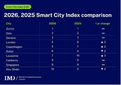 当地时间3月30日,瑞士洛桑国际发展管理学院IMD发布了“智慧城市指数2026”,苏黎世再次位居榜首,奥斯陆和日内瓦分别位列第二和第三,伦敦和哥本哈根升至第四和第五位。
