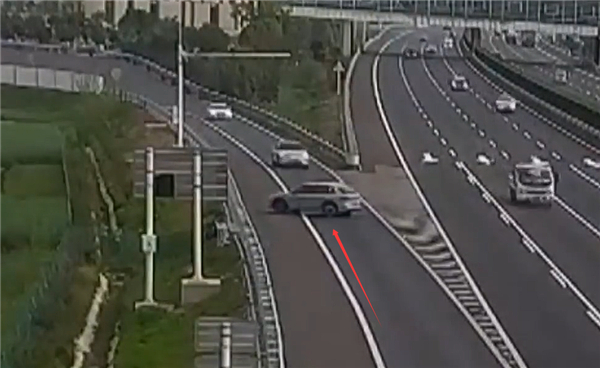 当天下午3点多,一辆银灰色电动汽车行驶至江苏高邮服务区出口匝道时,突然违规掉头、逆向驶入服务区,过往车辆见状纷纷紧急刹车、避让,场面险象环生。